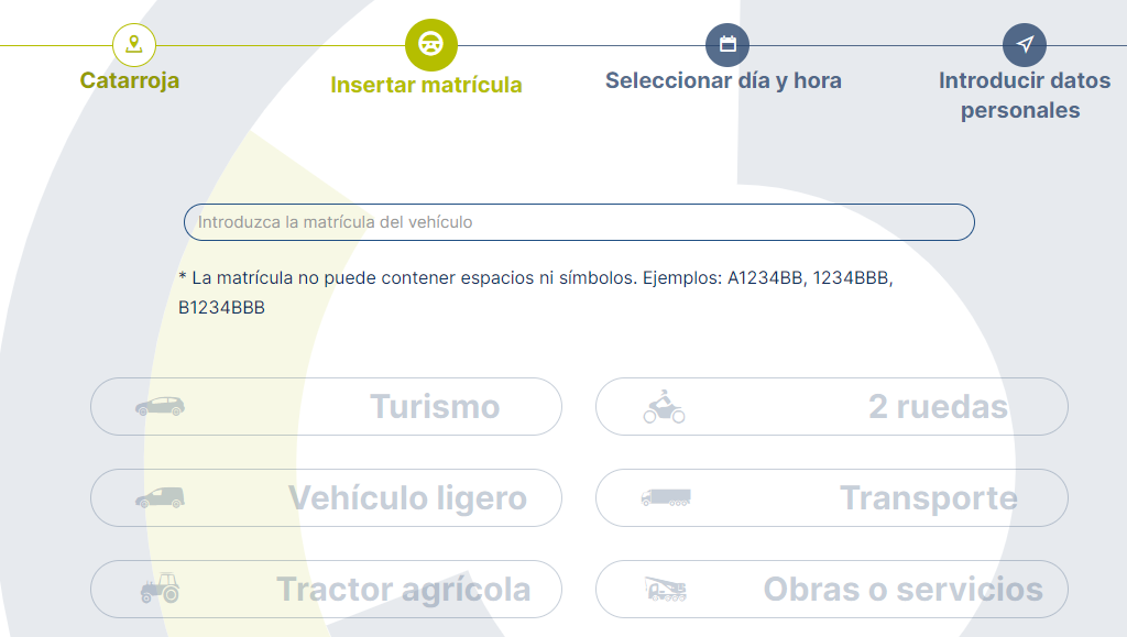 El segundo paso es insertar tu matrícula y el tipo de vehículo. Desde ahí, le damos a continuar.